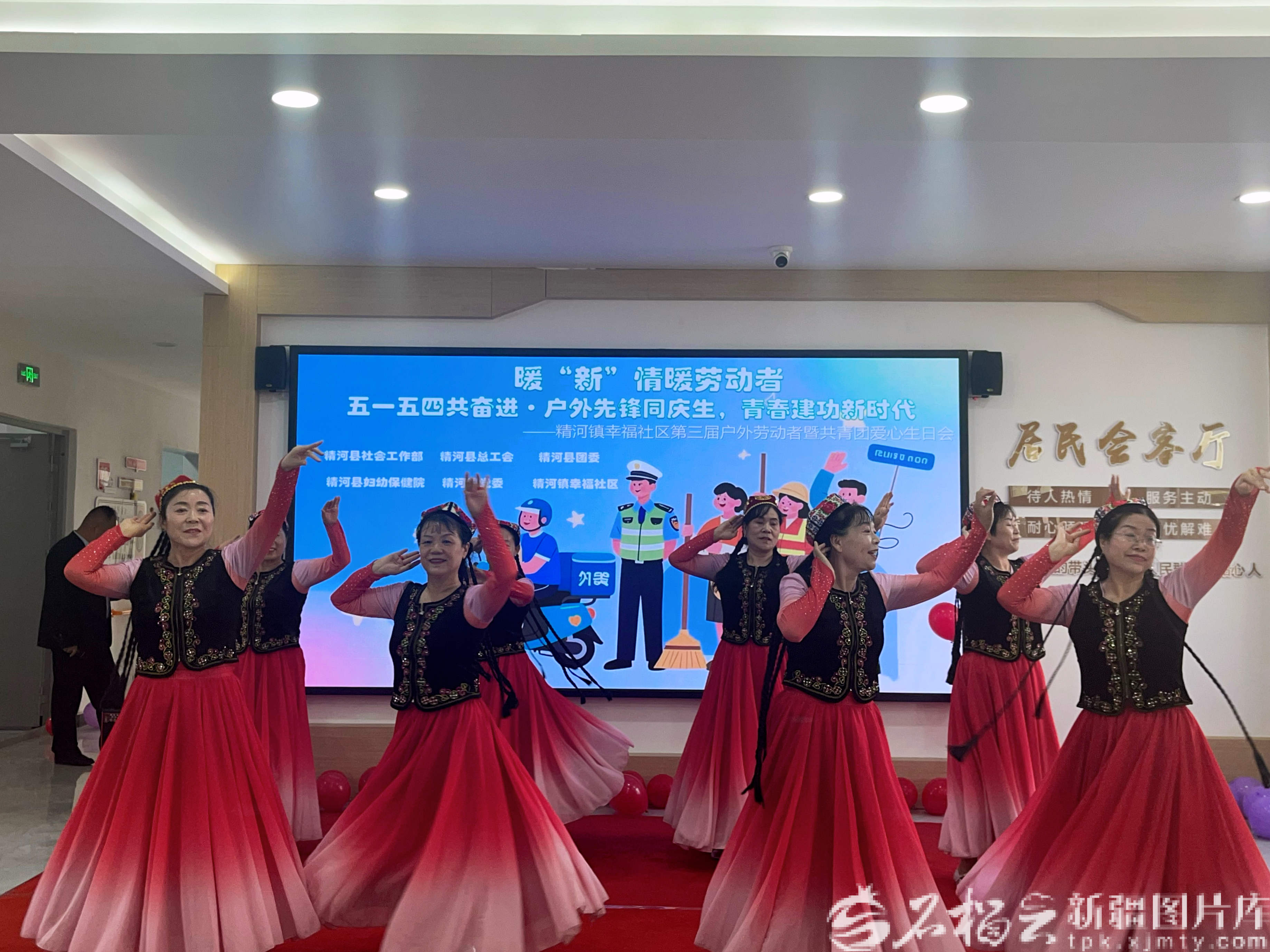 4月30日,幸福社區(qū)“舞動精河”舞蹈隊(duì)在表演節(jié)目。娜合木古麗·可心佰攝