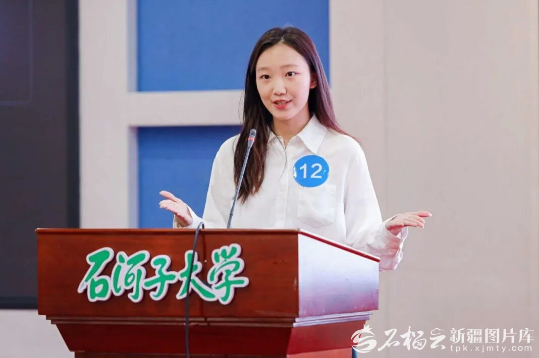 11月1日,選手在2025年“外研社·國才杯”“理解當(dāng)代中國”全國大學(xué)生外語能力大賽(英語組)新疆賽區(qū)選拔賽中展示自我。石河子大學(xué)供圖
