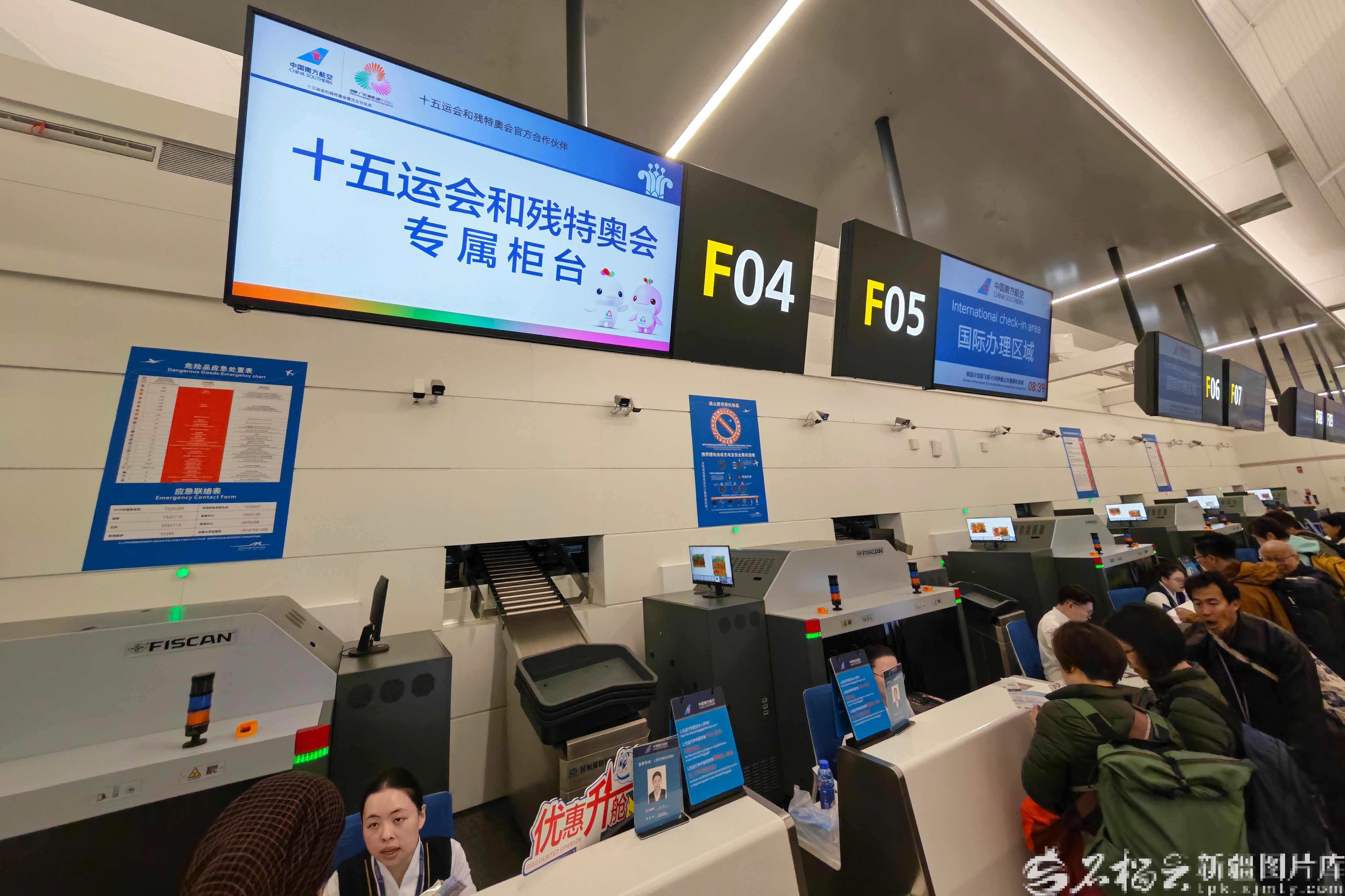 11月2日,烏魯木齊天山國際機場開設(shè)了第十五屆全國運動會專屬柜臺。