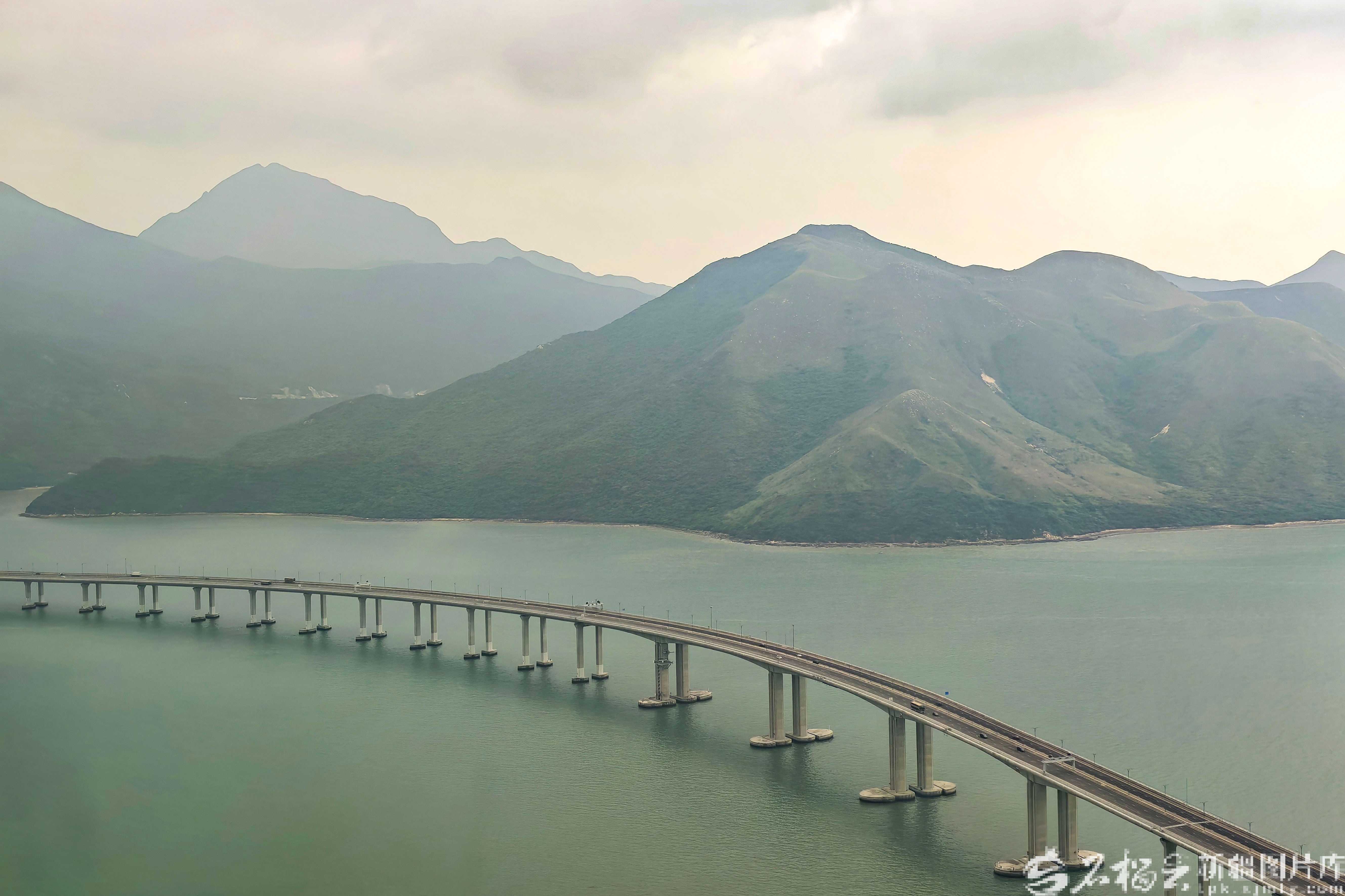 11月2日,記者在烏魯木齊飛往香港的CZ603航班上拍攝的港珠澳大橋。