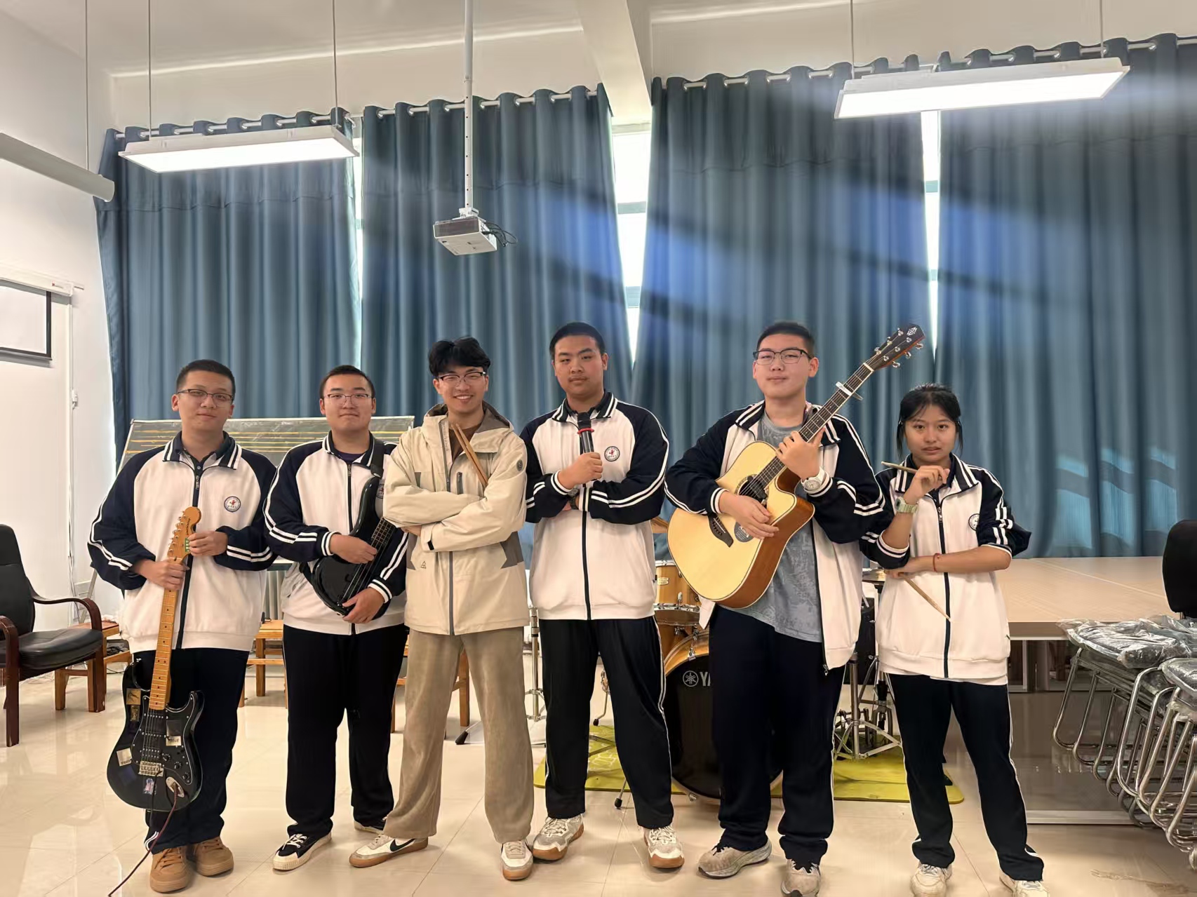 第二學(xué)期,我牽頭開設(shè)了器樂社團,吸引了一批熱愛音樂的學(xué)生加入。其中,學(xué)生毛傅軒尤為出眾,他不僅音樂功底扎實,還總有很多新穎想法。我們把一間堆滿雜物的儲物室清理干凈,添置了架子鼓等樂器,為解決排練噪音問題,我自費買來加厚隔音墊鋪在鼓下,每天晚飯后在這里集中排練。每天夜晚,我和學(xué)生們一同打磨每個音符、校準每段節(jié)奏。月光照進排練室,音樂聲響起,成為美好難忘的青春旋律。