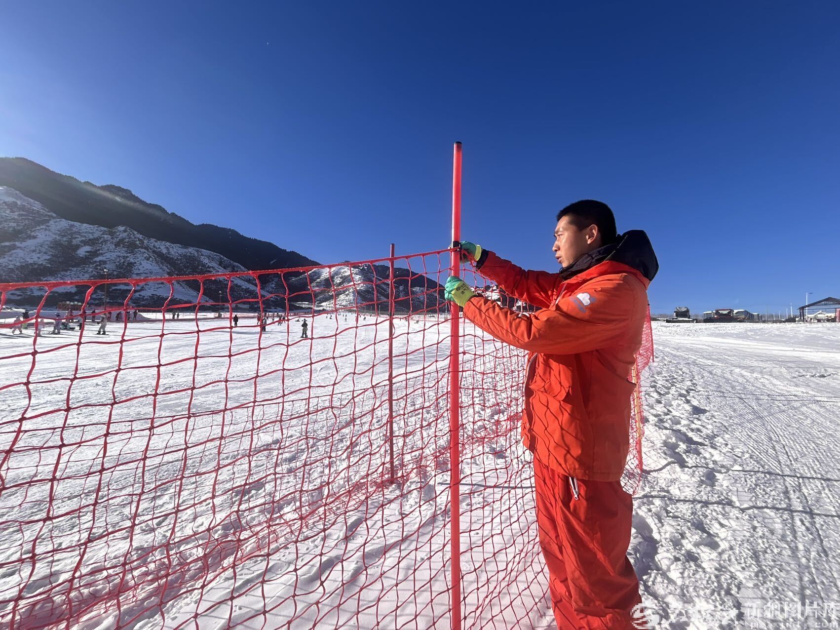 李彥周在檢查雪道邊的安全網(wǎng)。天山網(wǎng)-新疆日報記者 張小宓攝