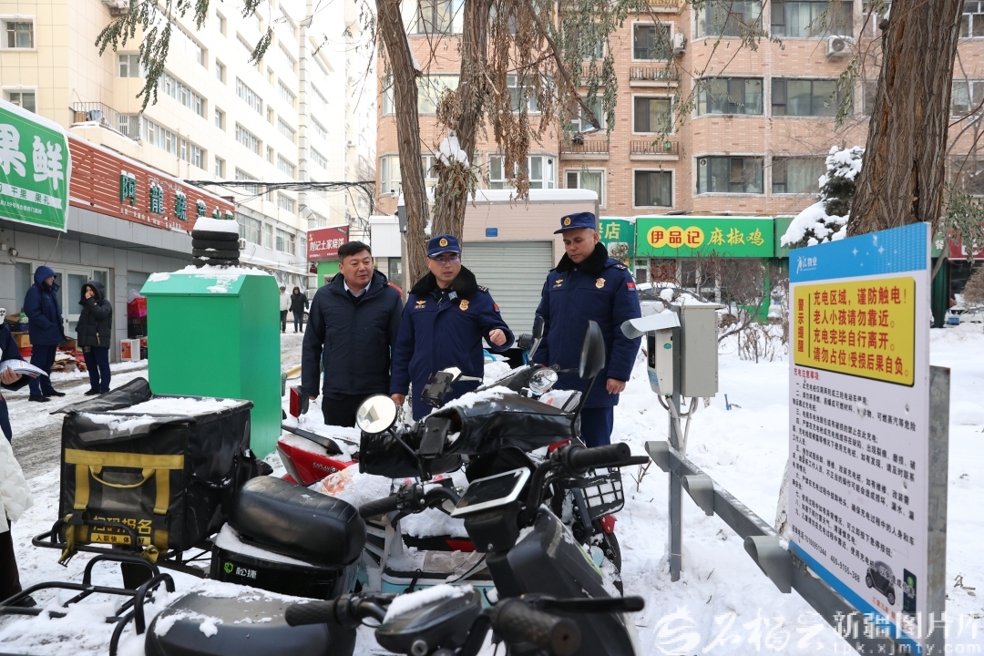 12月12日,烏市沙依巴克區(qū)消防救援大隊在紅十月花園小區(qū)檢查。新疆消防救援總隊供圖
