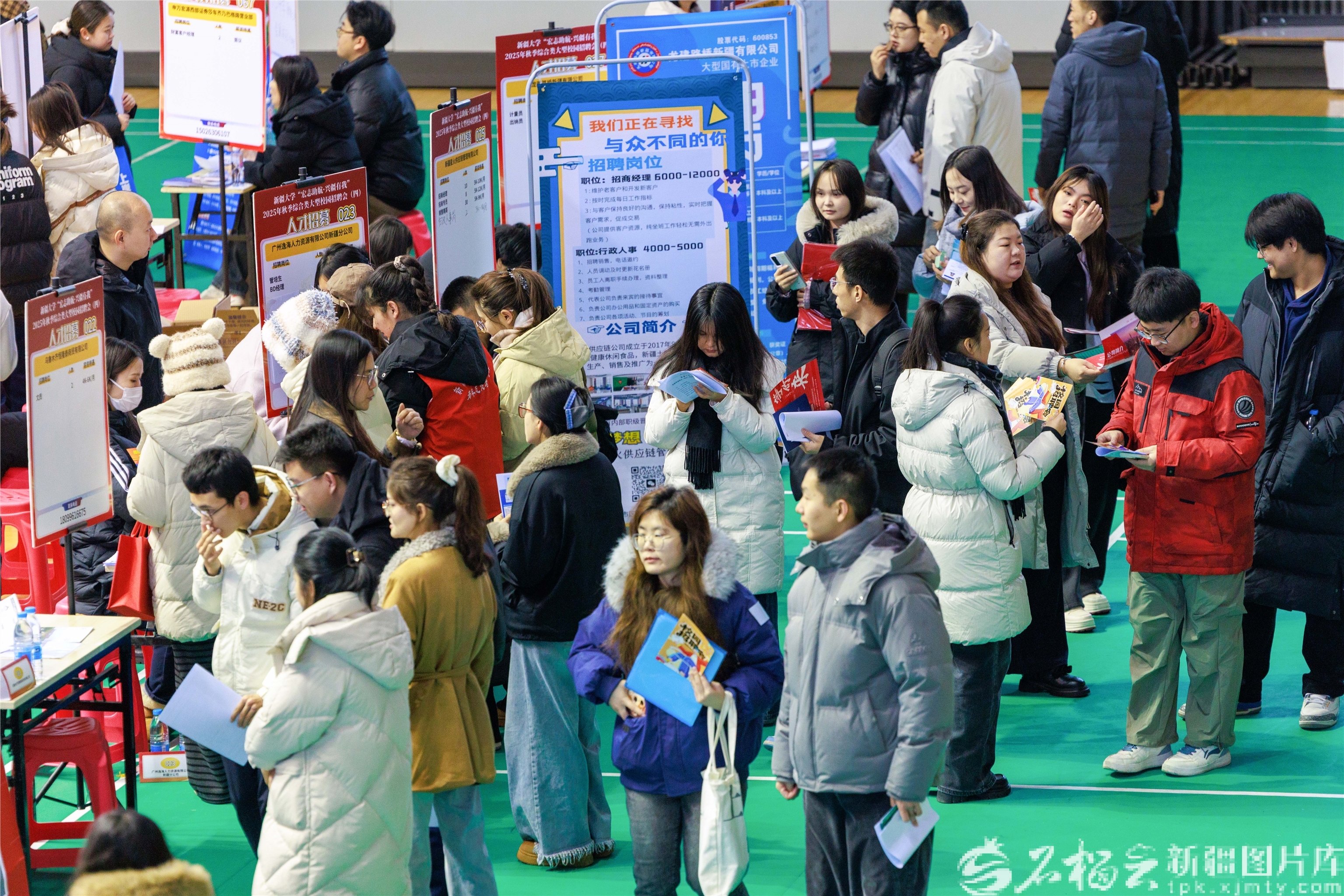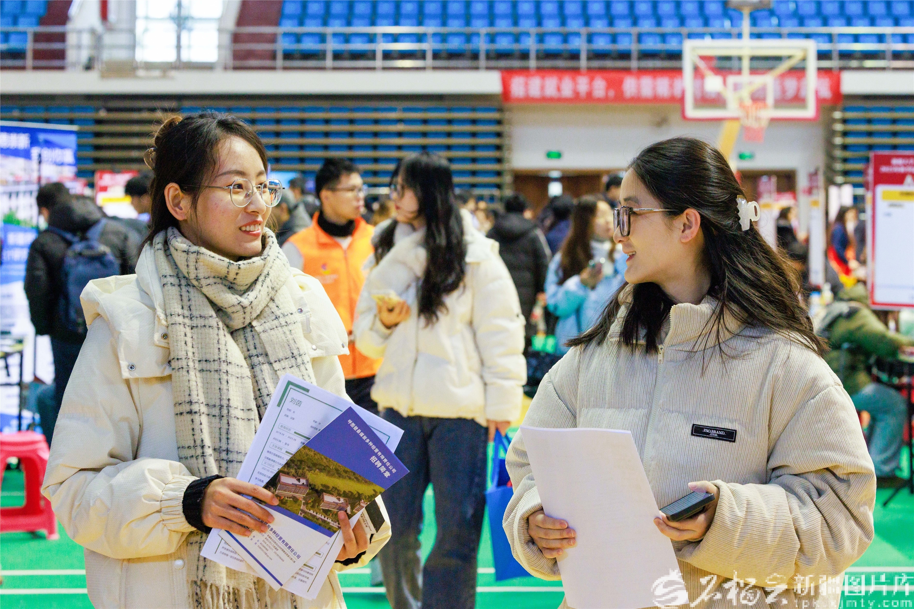 12月14日,求職學生與招聘單位代表交流。當日,由新疆大學黨委學生工作部主辦的“宏志助航興疆有我”大型校園招聘會在新疆大學紅湖校區(qū)舉行。招聘會吸引130多家企業(yè)參加,提供初高中各科老師、工藝工程師、國際銷售、招商經理等崗位316個。孫振嵩攝