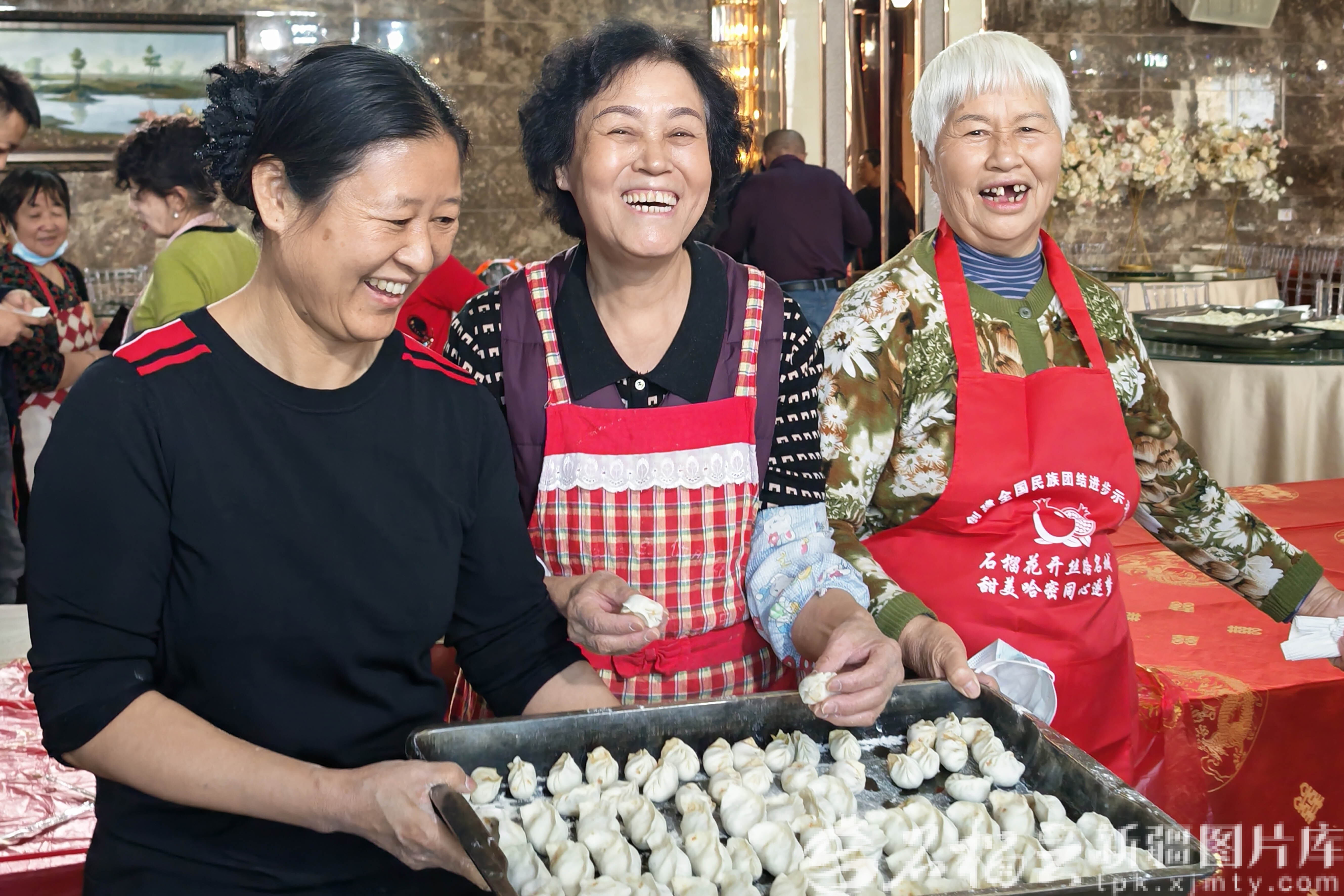 12月16日,哈密市伊州區(qū)東河街道可園社區(qū)居民一起包餃子。
