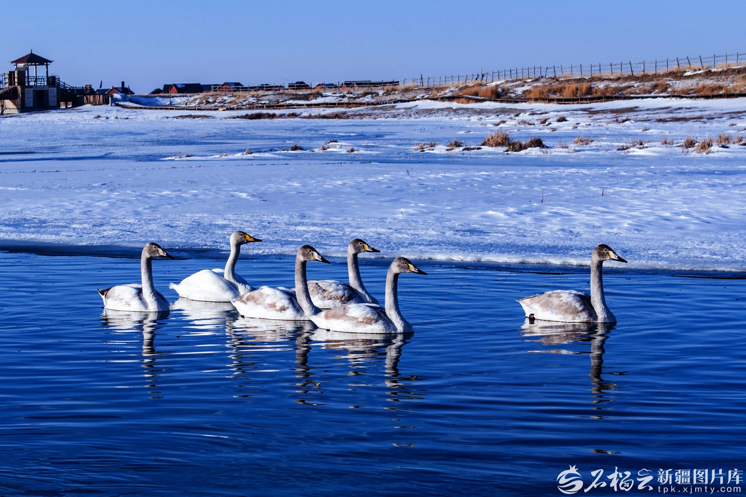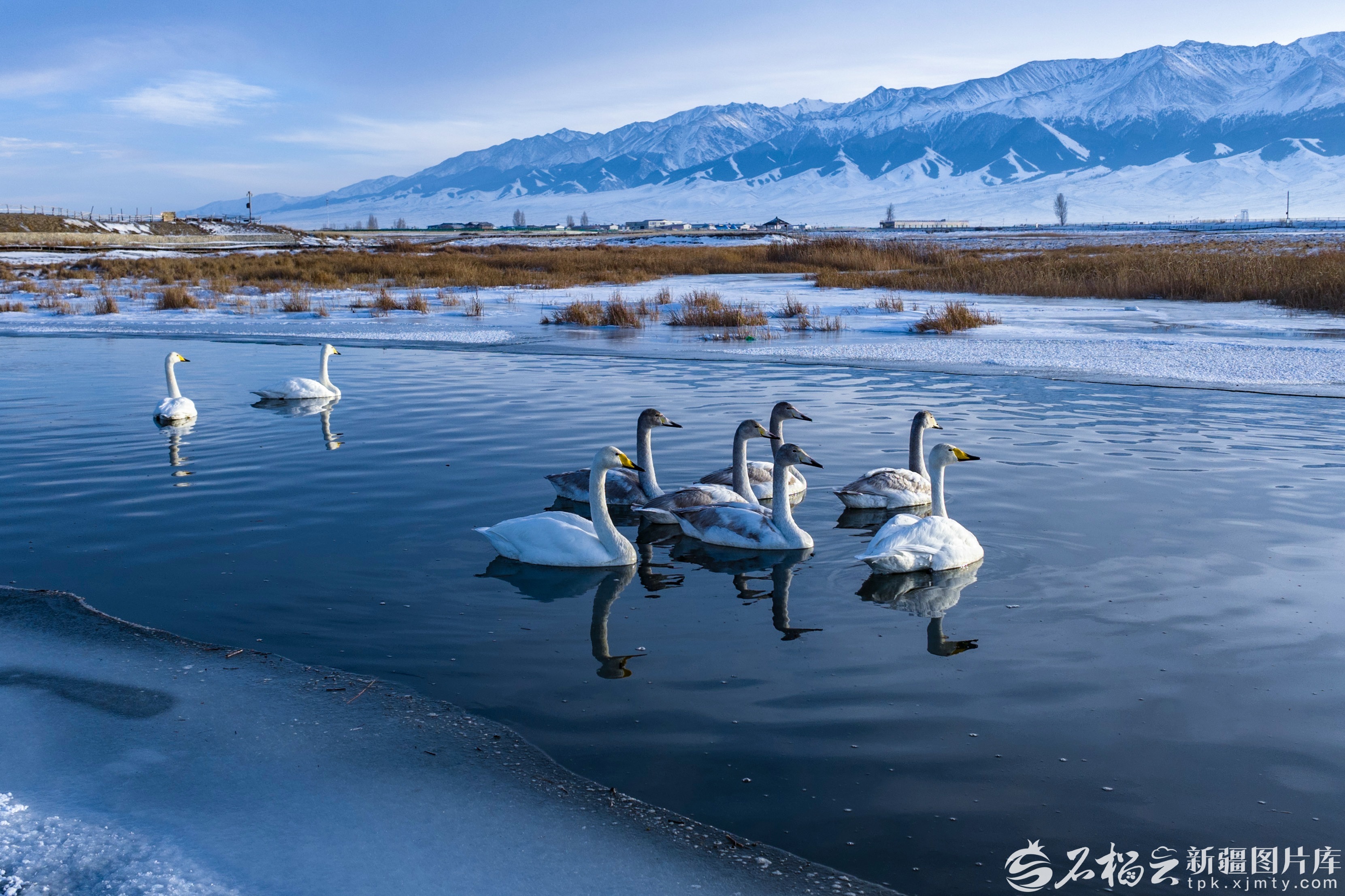 12月17日,巴里坤哈薩克自治縣高家湖濕地景區(qū),天鵝在水中游弋。