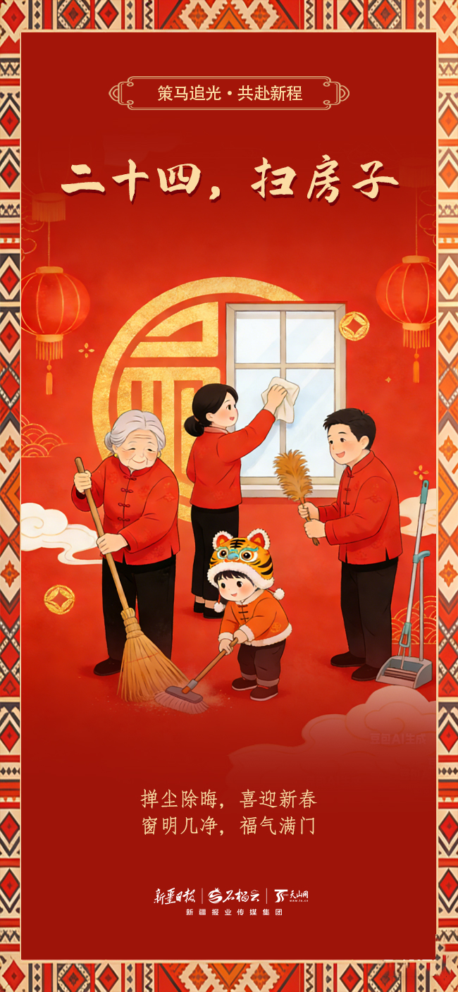 年俗流轉(zhuǎn),是刻在骨子里的年味,更是藏在歲月里的歡喜。從臘月二十三的甜蜜序曲,到除夕夜的團(tuán)圓高潮,關(guān)于過(guò)年的那些溫暖準(zhǔn)備,你是否依然珍藏于心?天山網(wǎng)精心備好一組年俗海報(bào),邀你一同重溫這些幸福的儀式,讓年味回歸,讓期待滿格!