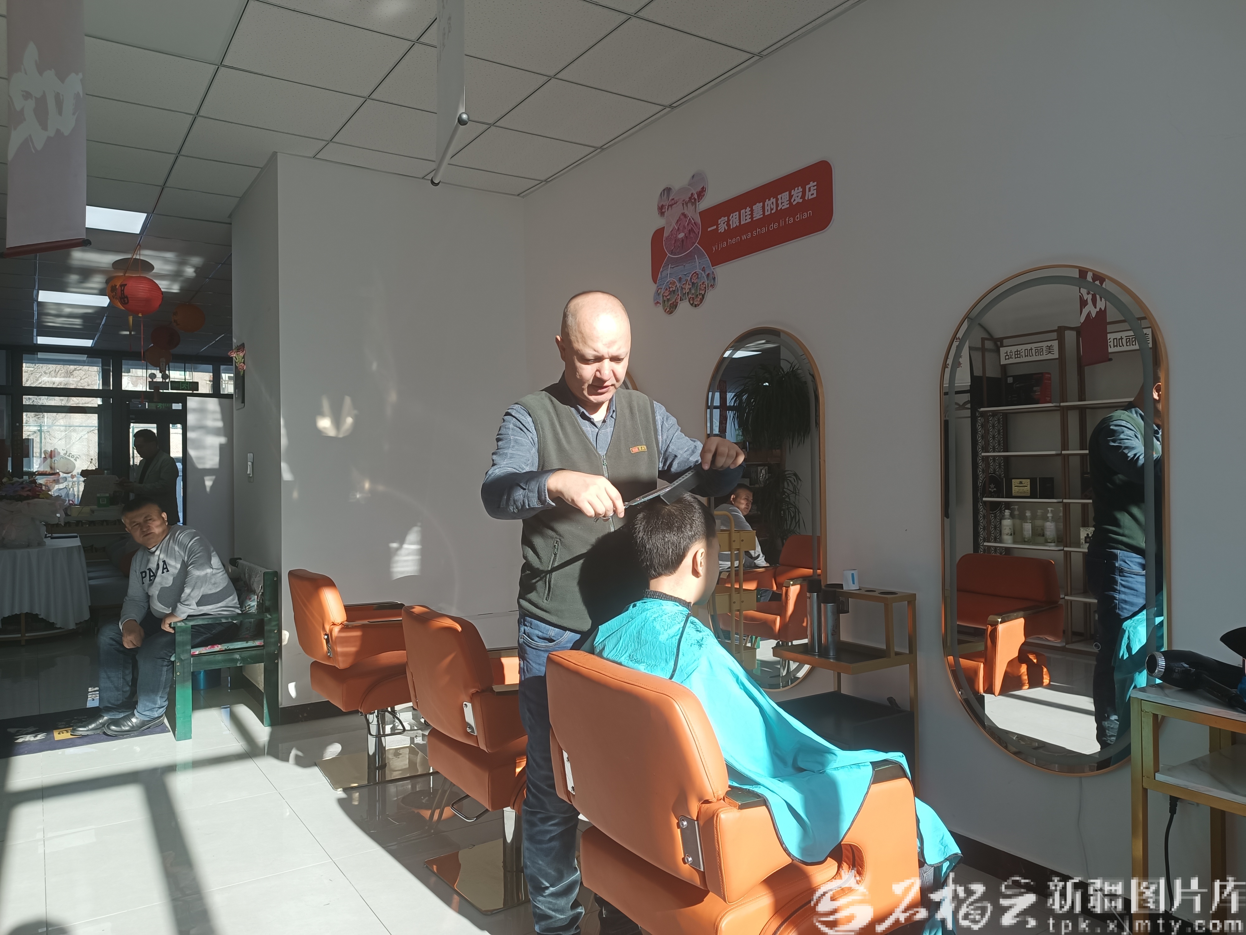 2月9日,烏魯木齊市天山區(qū)賽馬場街道賽馬場西社區(qū)鄰里中心,志愿者在給轄區(qū)居民理發(fā)。天山網(wǎng)-新疆日報記者 張冬梅攝