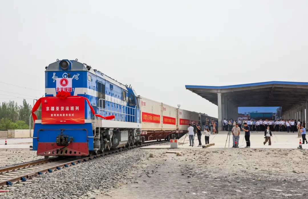 2025年6月23日清晨,在和田鐵路貨運(yùn)站,一列滿載和田大棗、核桃的貨運(yùn)班列鳴笛啟程,奔赴北京;同一時刻,北京市平谷區(qū)馬坊站,另一列裝載汽車零部件的班列同步出發(fā)——首列“京疆亞”貨運(yùn)班列實(shí)現(xiàn)雙向?qū)﹂_。