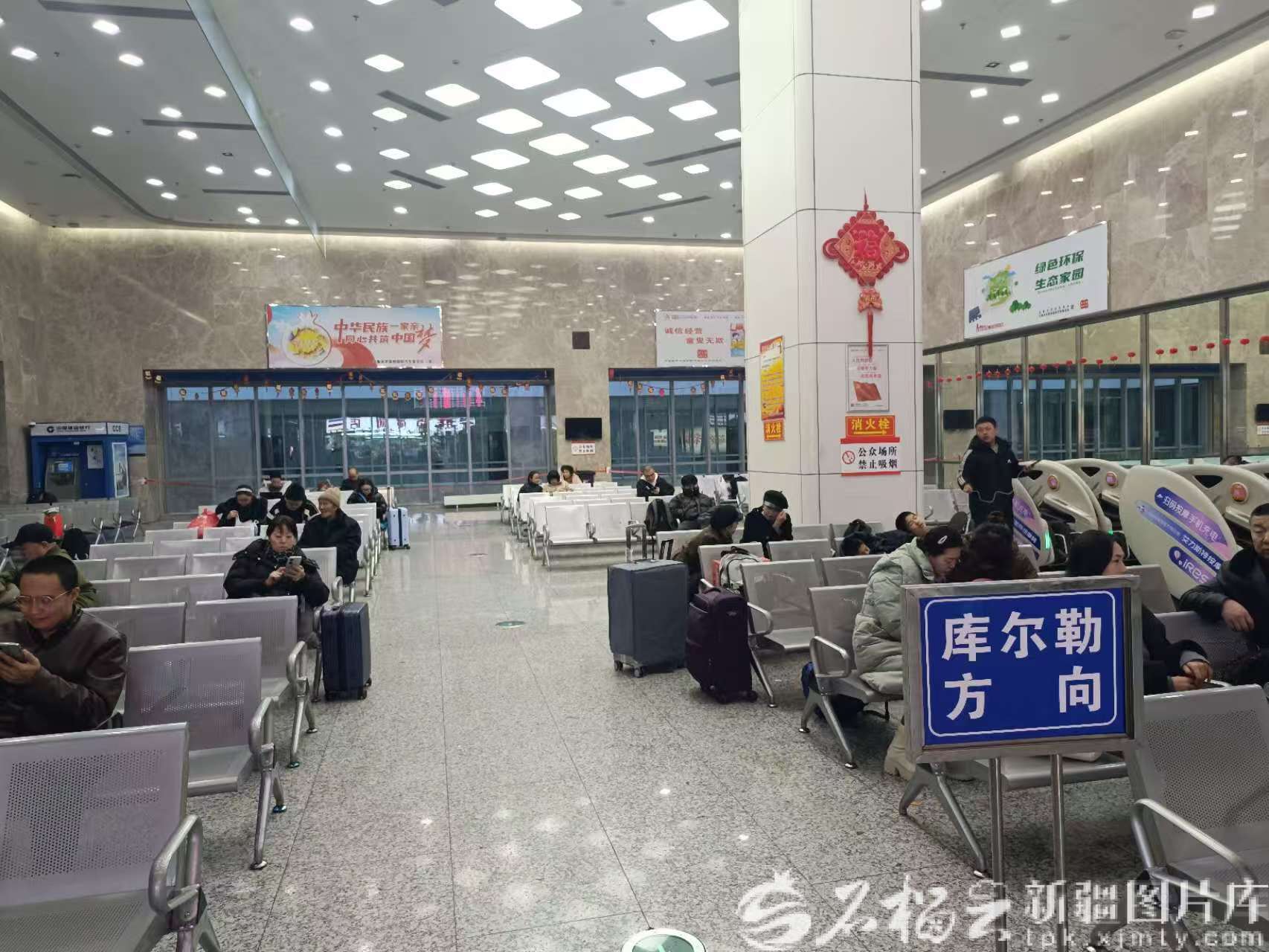 26歲的高陽坐在候車區(qū)刷著手機(jī),屏幕上播放著烏尉高速的視頻。他在烏魯木齊一家事業(yè)單位工作,往年回和靜縣過年,要先坐3個(gè)多小時(shí)火車到焉耆,再轉(zhuǎn)汽車,折騰到家差不多5小時(shí)?!艾F(xiàn)在烏尉高速通了,有直達(dá)的‘天山巴士’,3個(gè)多小時(shí)就能到,就算除夕早上走,也能趕上家里的‘年午飯’?!彼f。