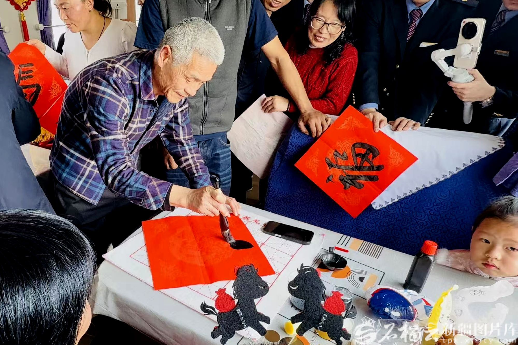 2月16日,除夕,T269次“絲路駝鈴號”列車上,旅客李養(yǎng)生為大家書寫福字。張弛攝