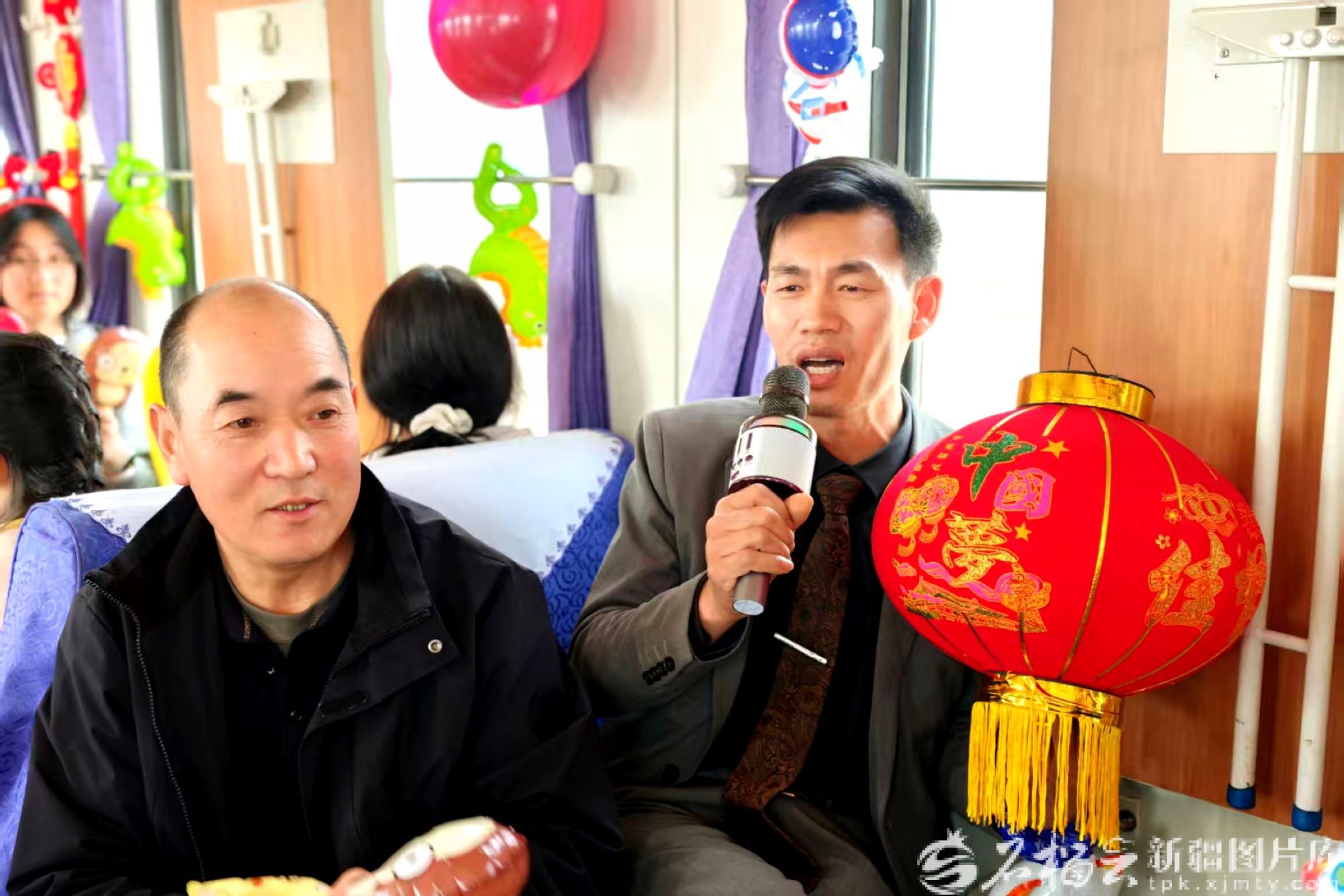 2月16日,除夕,T269次“絲路駝鈴號”列車上,旅客劉書華放聲歌唱。張弛攝