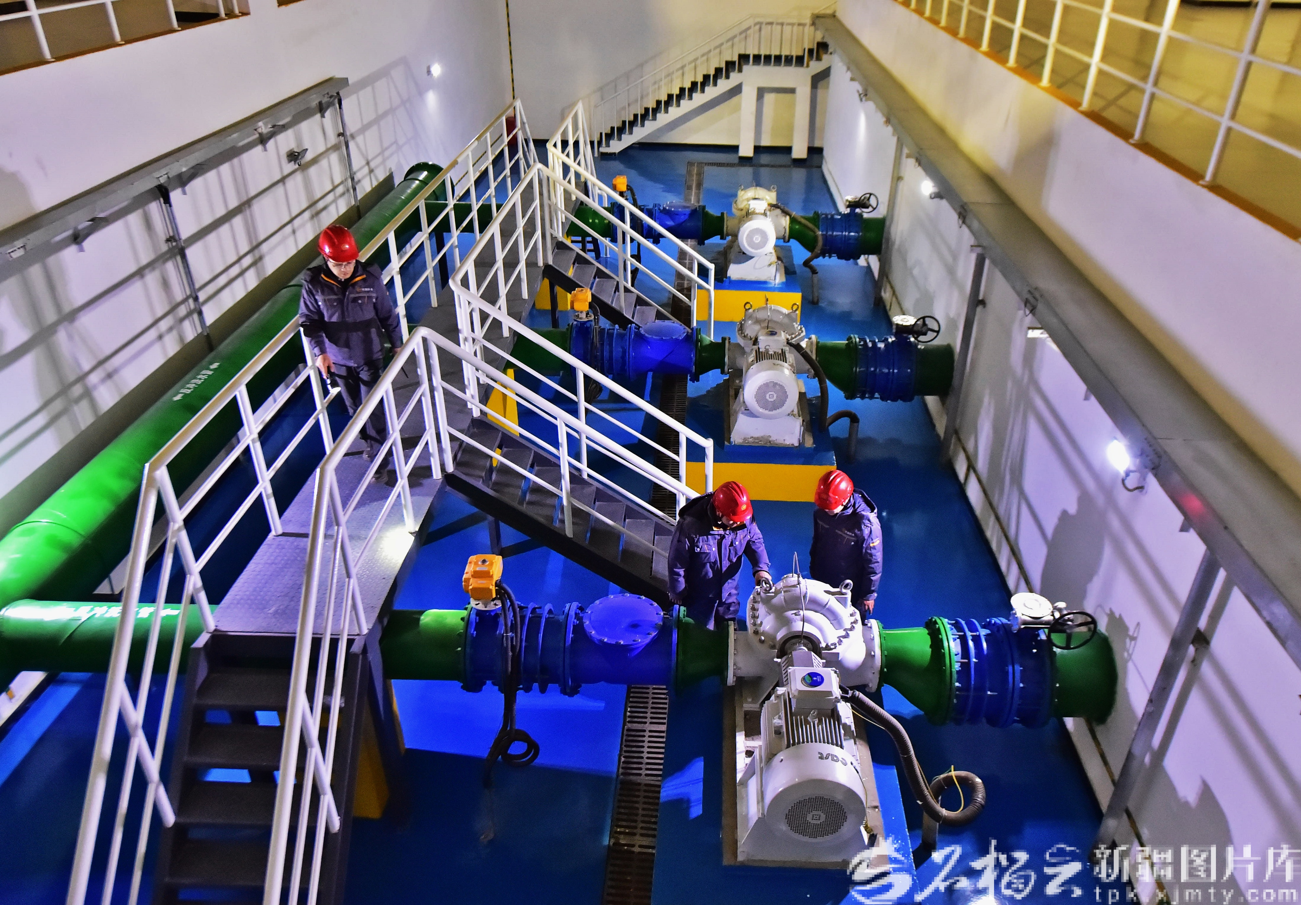 2月17日,新疆開源供水有限公司工人在生產車間查看設備運轉狀況。