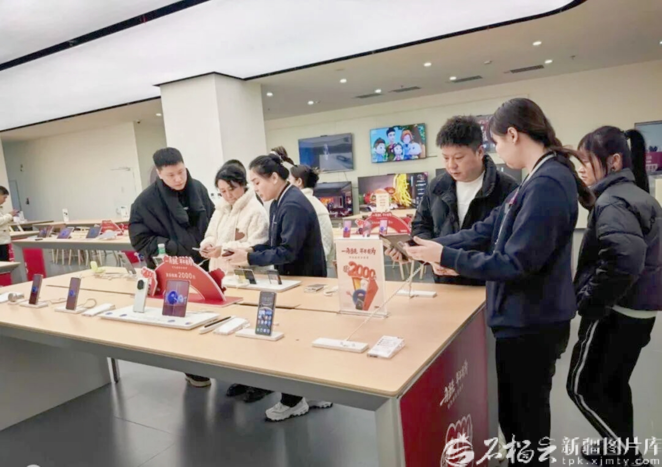 2月17日,哈密市一家商超內(nèi),顧客正在選購手機(jī)。李旭光 攝