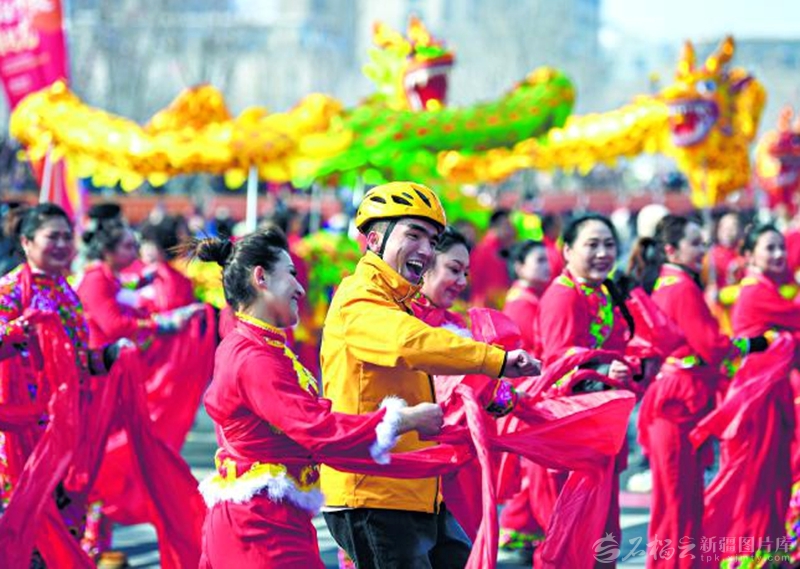 2月26日,演員在表演社火。當(dāng)日,第二屆“打起手鼓舞起龍”烏魯木齊社火展演活動在烏魯木齊文化中心啟幕,18支社火表演隊(duì)伍同臺展演,奉獻(xiàn)上了一場精彩的文化盛宴。天山網(wǎng)-新疆日報記者王禹攝