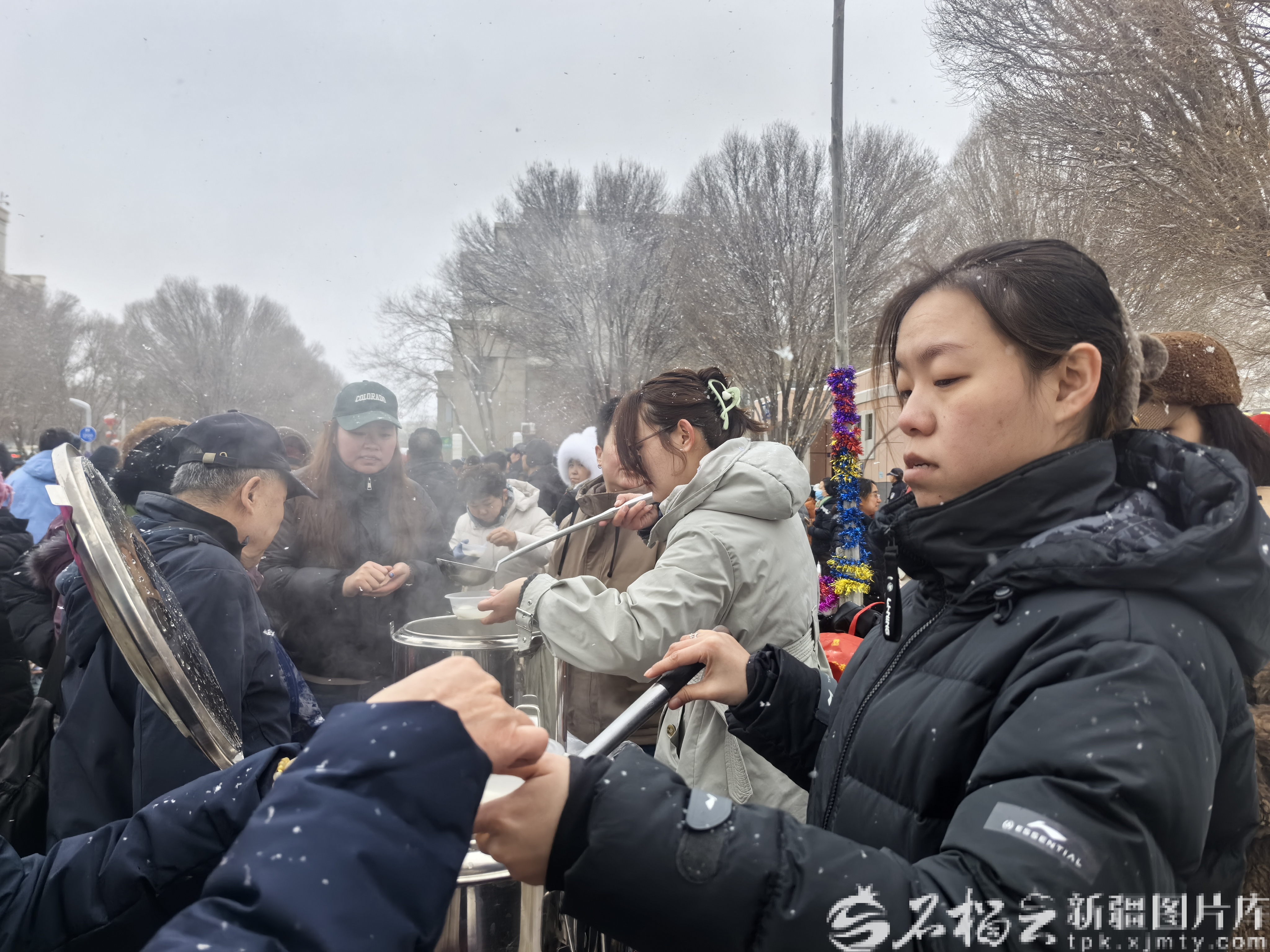 2月28日,烏魯木齊經濟技術開發(fā)區(qū)(頭屯河區(qū))火車西站街道的燈塔廣場上,市民們在品嘗湯圓。王思媛攝