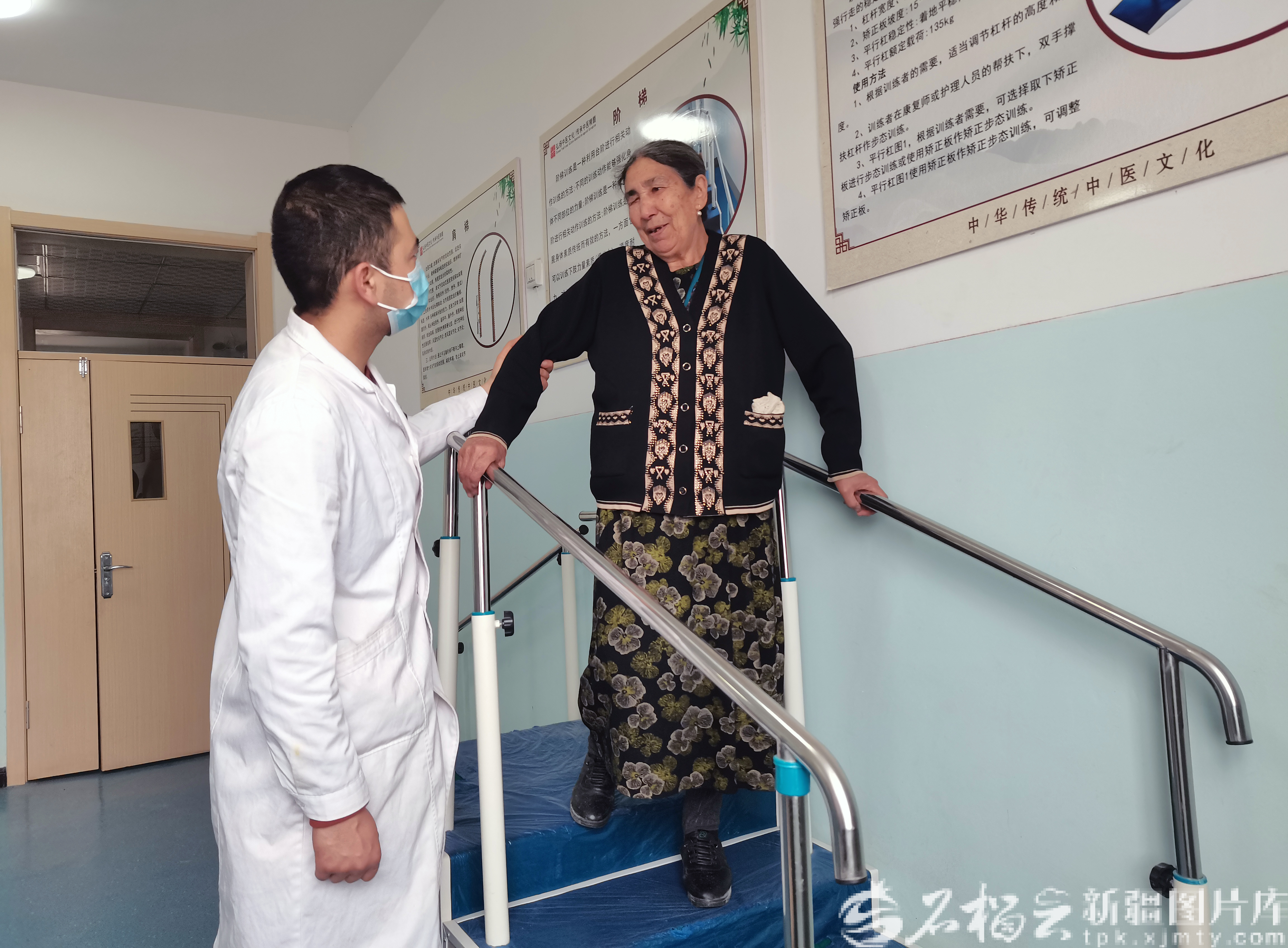 3月17日,在澤普縣醫(yī)共體奎依巴格鄉(xiāng)分院的中醫(yī)館內(nèi),醫(yī)生幫助患者做康復(fù)訓(xùn)練。王華賢 攝