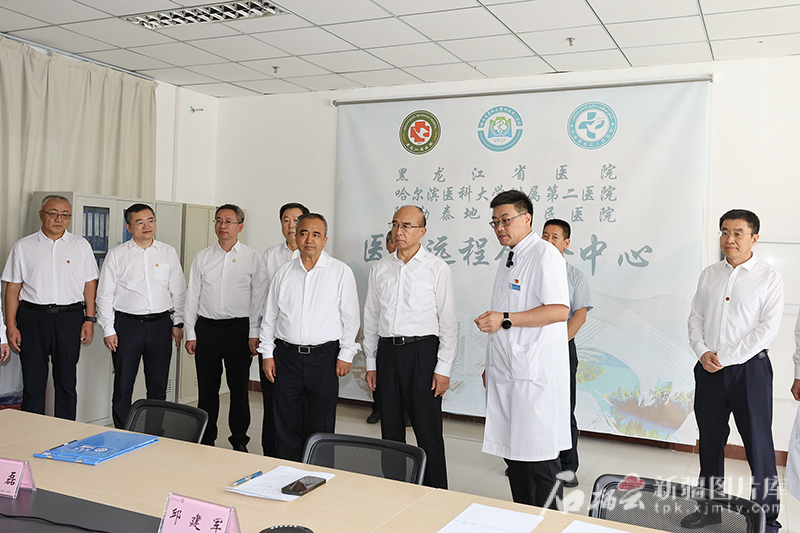 7月11日,黑龍江省委書記、省人大常委會主任許勤,自治區(qū)黨委副書記、自治區(qū)主席艾爾肯·吐尼亞孜在阿勒泰地區(qū)人民醫(yī)院,調(diào)研醫(yī)療援疆項(xiàng)目建設(shè)情況。天山網(wǎng)-新疆日報(bào)記者 謝龍攝
