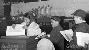 三年之后,又一張照片定格歷史。1955年9月,新疆省第一屆人民代表大會第二次會議上,各族代表莊嚴落筆,在投票箱中投下神圣的選票,選舉即將誕生的新疆維吾爾自治區(qū)人民委員會組成人員。這張選票,是人民權(quán)利在制度軌道上奔騰的見證。