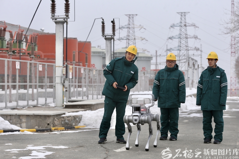 2026年1月,烏魯木齊220千伏老滿城變電站內(nèi),國網(wǎng)烏魯木齊供電公司運維人員和一臺智能機器人在對變電設(shè)備進行巡檢。李瑞 攝
