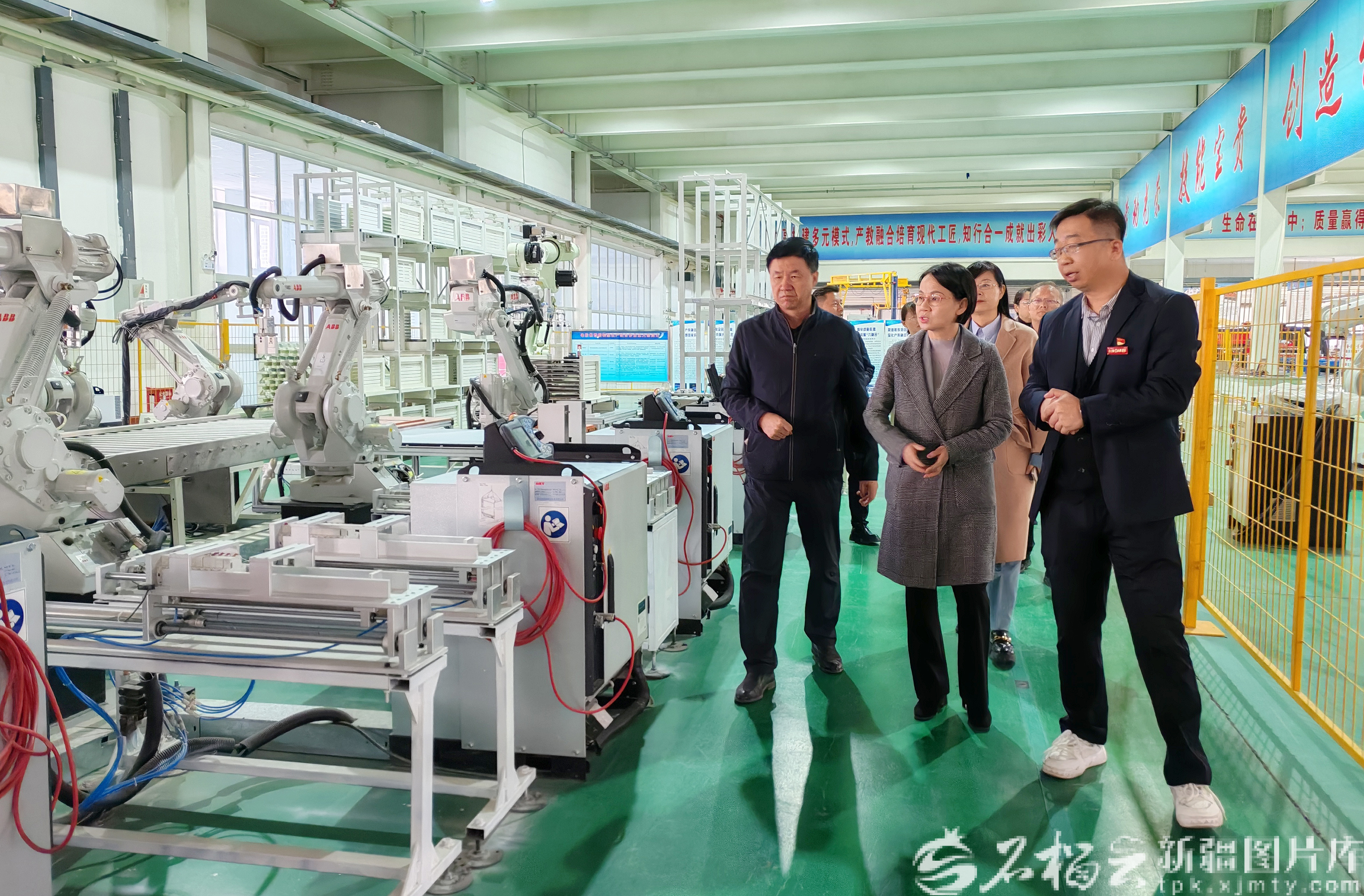 2025年5月,張慧(前左二)在烏魯木齊高新技術(shù)產(chǎn)業(yè)開發(fā)區(qū)(新市區(qū))政務(wù)服務(wù)中心體驗館走訪調(diào)研,開展民主監(jiān)督工作。圖/張慧提供