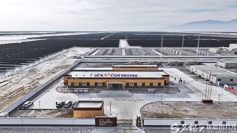 中廣核和田地區(qū)策勒縣80萬千瓦光伏治沙項(xiàng)目并網(wǎng),投入商業(yè)運(yùn)營。圖/策勒縣融媒體中心提供