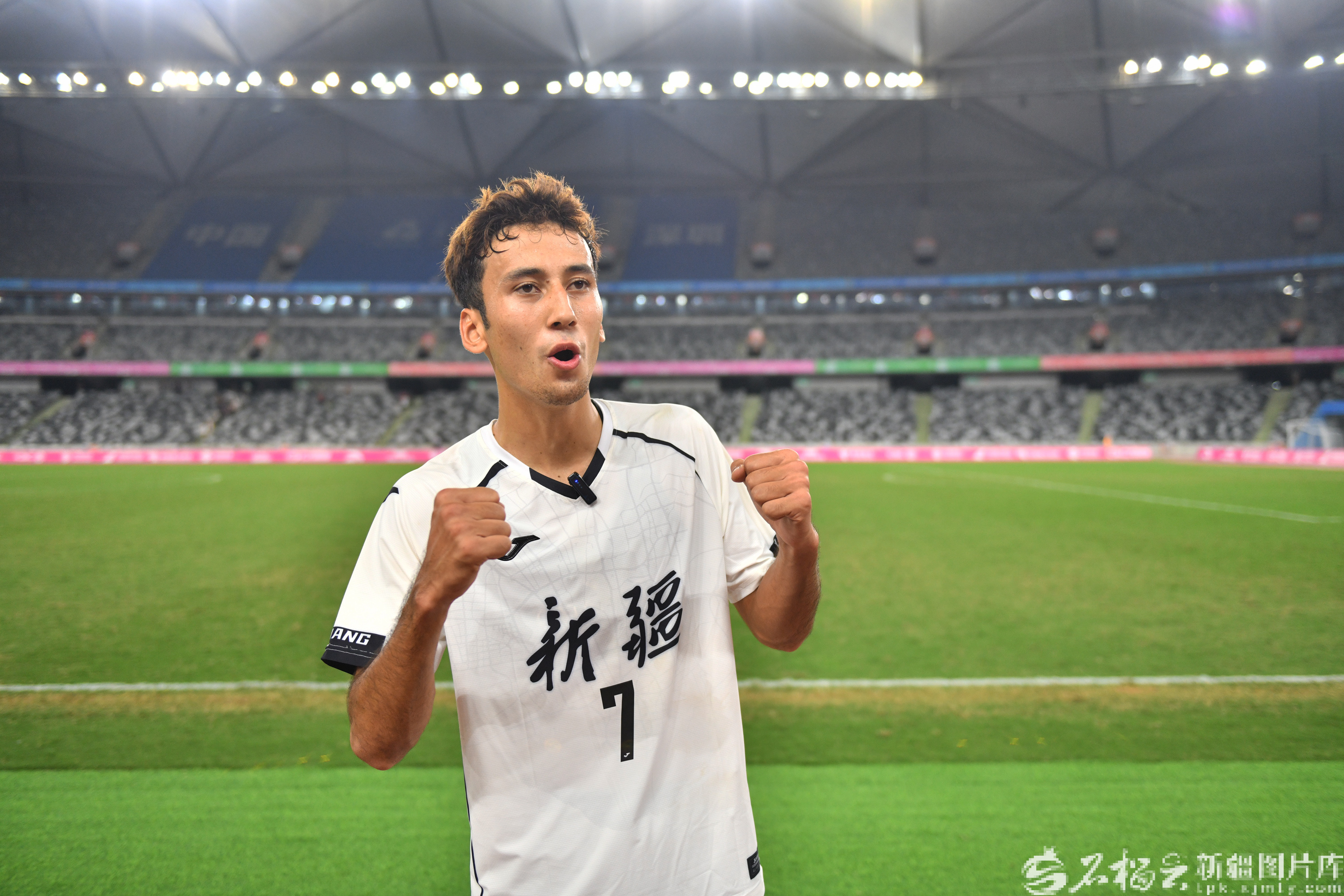 11月3日晚,在深圳大運(yùn)體育中心體育場(chǎng),為新疆隊(duì)打進(jìn)致勝一球的安外爾?艾力。