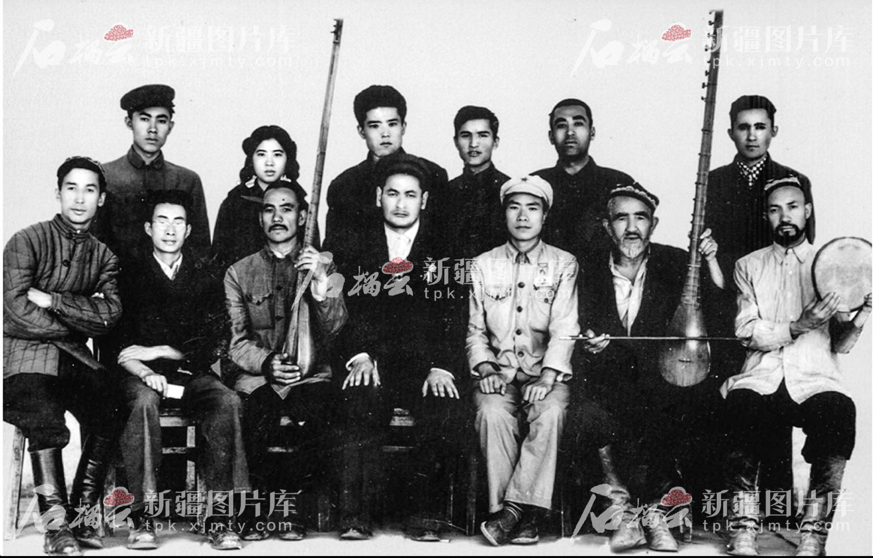 20世紀50年代,萬桐書(前排左二)、吐爾迪·阿洪(前排右二)等十二木卡姆整理工作組成員合影。(新疆圖片庫提供)
