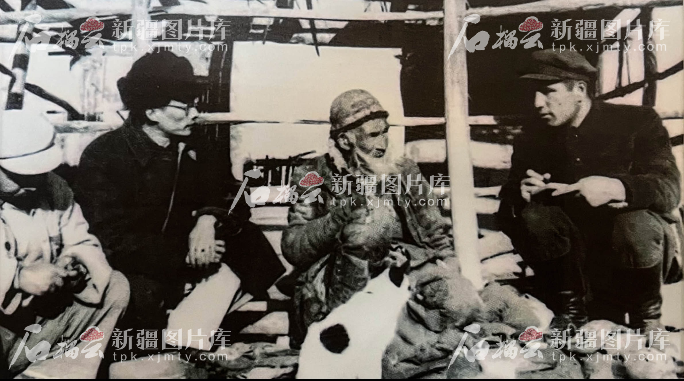 20世紀50年代,萬桐書(左二)與同事在南疆收集整理十二木卡姆。(新疆圖片庫提供)