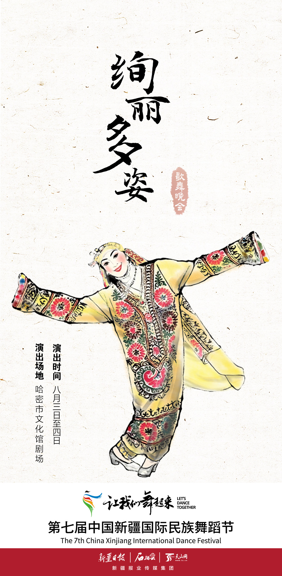 手繪海報(bào)丨第七屆中國新疆國際民族舞蹈節(jié)——分會場:歌舞晚會《絢麗多姿》