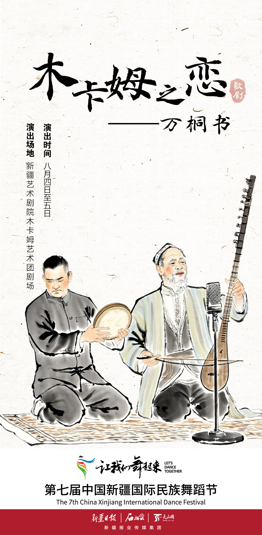 手繪海報(bào)丨第七屆中國新疆國際民族舞蹈節(jié)——歌劇《木卡姆戀歌——萬桐書》