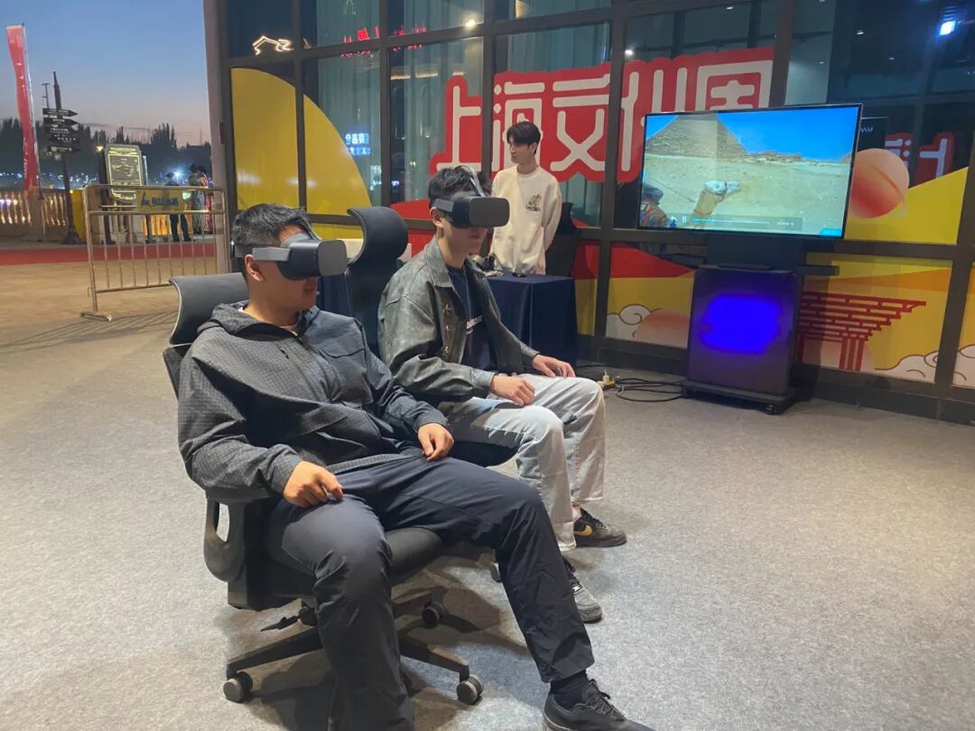 除美食文化板塊外,其他板塊也各有特色,從不同維度搭建起滬喀文化交流的橋梁。其中,產(chǎn)業(yè)文化板塊中的滬喀文化交流展通過圖文展板、實物陳列等形式,生動呈現(xiàn)滬喀對口支援以來在民生改善、產(chǎn)業(yè)發(fā)展、文化互鑒等領(lǐng)域的成果,讓市民直觀感受兩地攜手共進的歷程;紅色文化板塊則整合“初心驛站”和VR場景體驗,弘揚紅色革命精神,打造沉浸式紅色教育空間。在VR體驗館內(nèi),市民戴上VR設(shè)備就能“身臨其境”游覽外灘、豫園、上海中心等標志性景點,感受上海的都市風光與歷史底蘊;初心驛站以紅色文化為主題,通過紅色故事分享及紅色文化沙龍茶歇與紅色電影賞析,讓群眾在輕松氛圍中感受紅色文化的熏陶;非物質(zhì)文化遺產(chǎn)板塊通過舉辦“艾德萊斯+海派設(shè)計”秀場,傳遞多元文化精髓,展現(xiàn)兩地文化的碰撞與交融。