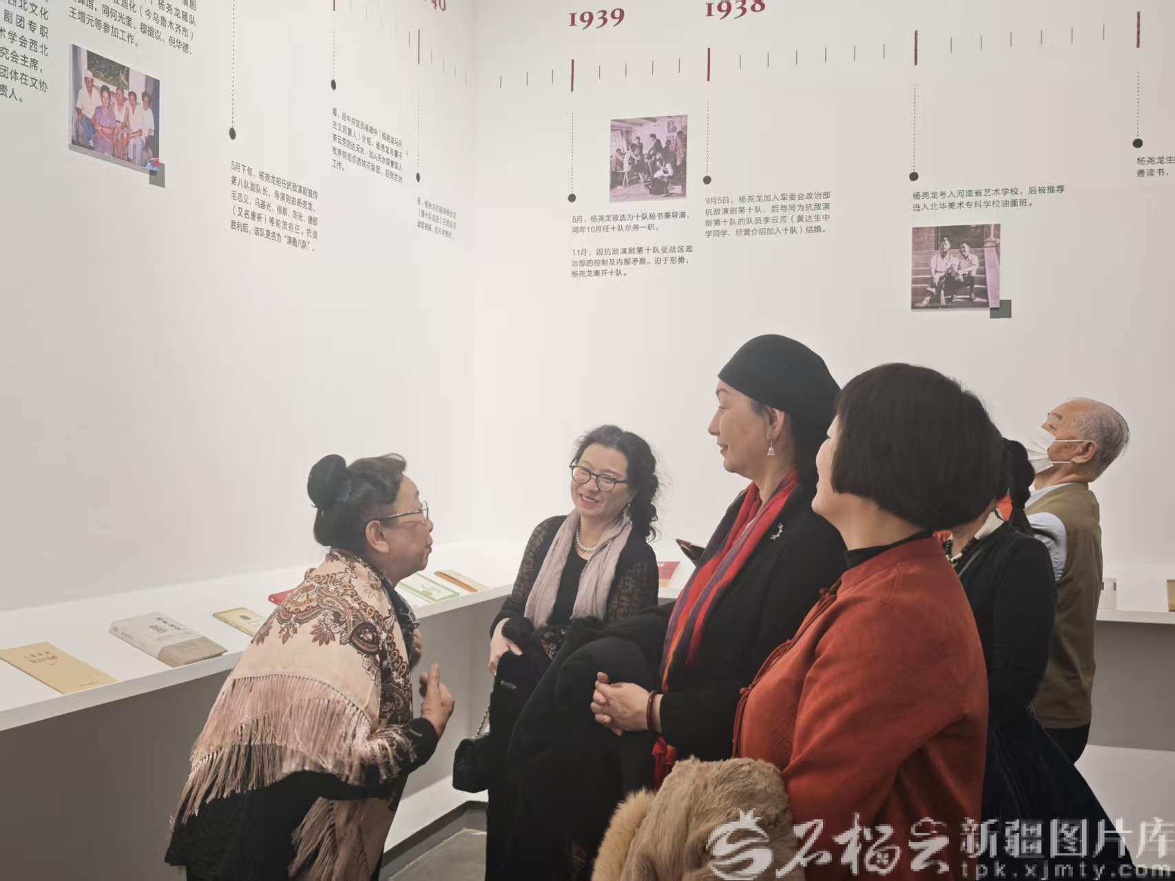 觀眾在新疆美術(shù)館觀看“何必為年齡發(fā)愁——楊堯龍捐贈(zèng)作品展”。