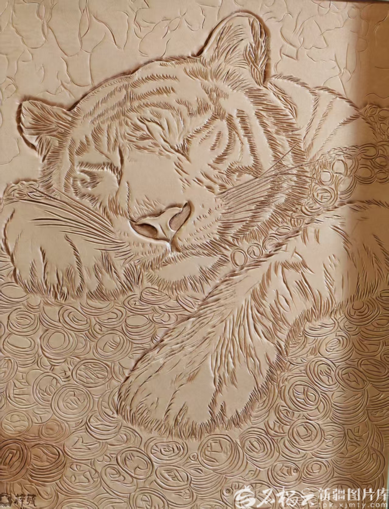 胡乃毓雕刻的“虎”主題皮雕作品。受訪者供圖