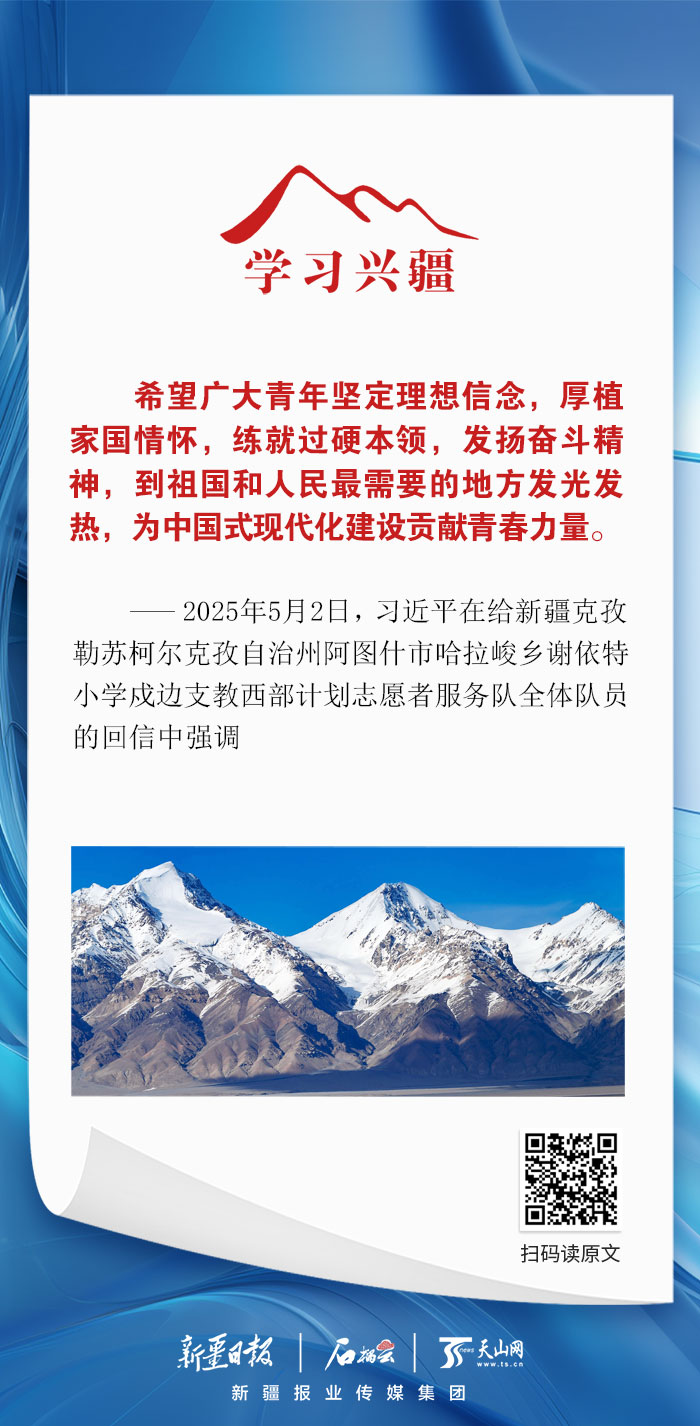 ——2025年5月2日,習近平在給新疆克孜勒蘇柯爾克孜自治州阿圖什市哈拉峻鄉(xiāng)謝依特小學(xué)戍邊支教西部計劃志愿者服務(wù)隊全體隊員的回信中強調(diào)