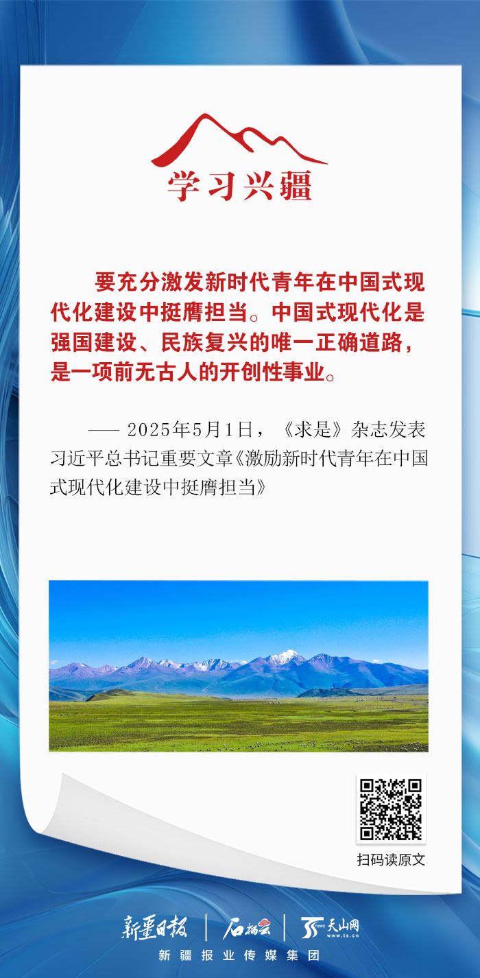 ——2025年5月1日,《求是》雜志發(fā)表習(xí)近平總書記重要文章《激勵(lì)新時(shí)代青年在中國式現(xiàn)代化建設(shè)中挺膺擔(dān)當(dāng)》