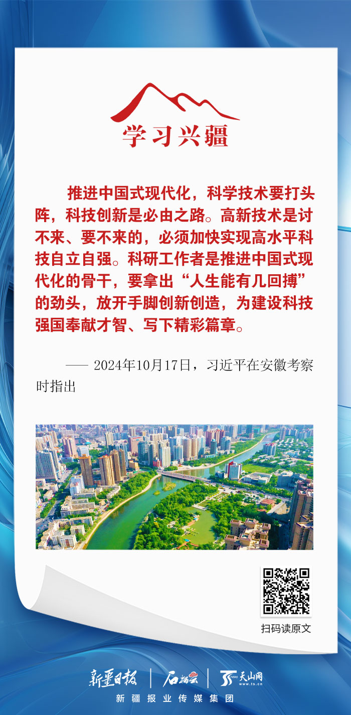 推進中國式現(xiàn)代化,科學技術要打頭陣,科技創(chuàng)新是必由之路。高新技術是討不來、要不來的,必須加快實現(xiàn)高水平科技自立自強。科研工作者是推進中國式現(xiàn)代化的骨干,要拿出“人生能有幾回搏”的勁頭,放開手腳創(chuàng)新創(chuàng)造,為建設科技強國奉獻才智、寫下精彩篇章。