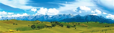 江布拉克在哈薩克語中意為“圣水之源”。這里雪山融水充沛,“麥子會爬山”的農(nóng)耕技藝傳承千年,形成自然與人文交織的獨特景觀。