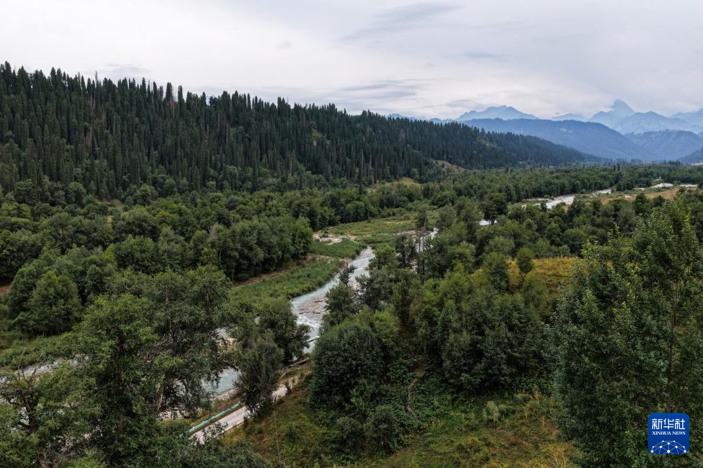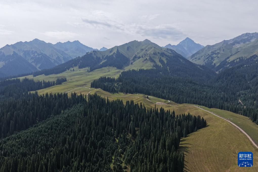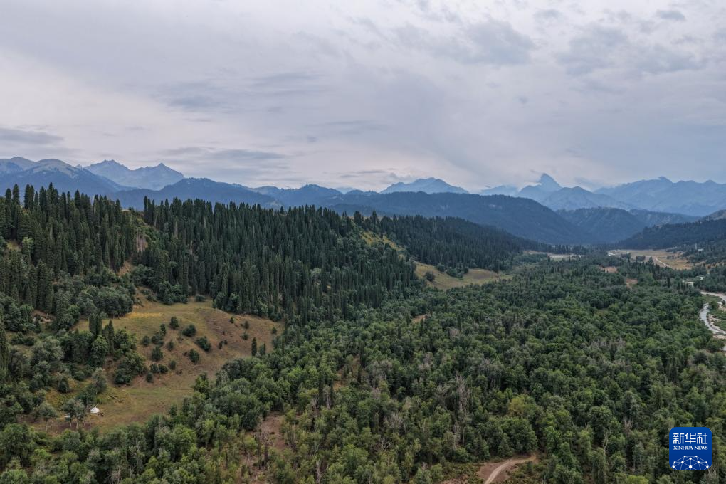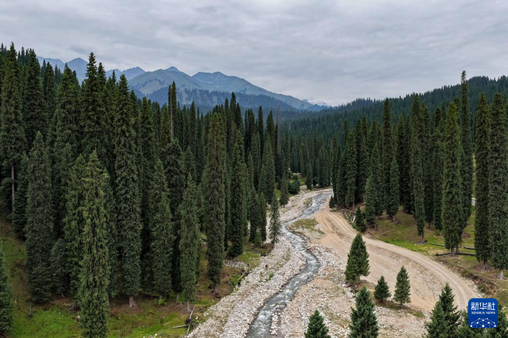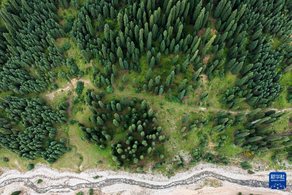 這是8月2日在庫爾德寧拍攝的雪嶺云杉(無人機照片)。新華社記者 趙宇思 攝