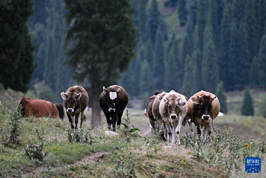 8月2日,牛群漫步在庫爾德寧。新華社記者 辛悅衛(wèi) 攝