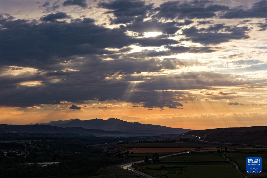 8月2日,落日余輝透過云層灑落在庫爾德寧(無人機照片)。新華社記者 辛悅衛(wèi) 攝
