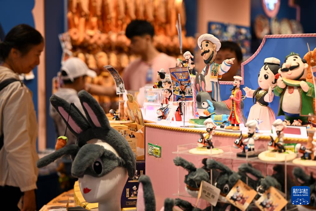 8月21日,游客在烏魯木齊大巴扎步行街選購文創(chuàng)產(chǎn)品。新華社記者 王菲 攝