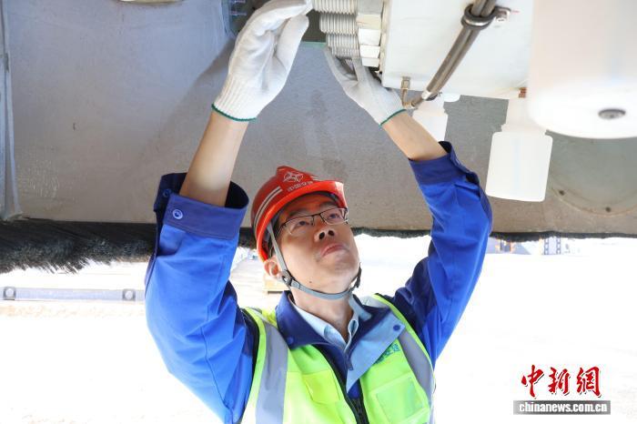 段穩(wěn)盼在新疆木壘縣風(fēng)力發(fā)電施工現(xiàn)場檢驗工序。中交一航局供圖