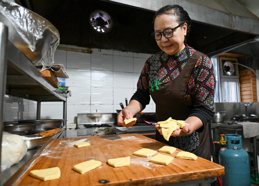 9月17日,馬秀花在制作哈薩克族傳統(tǒng)風(fēng)味的包爾薩克。