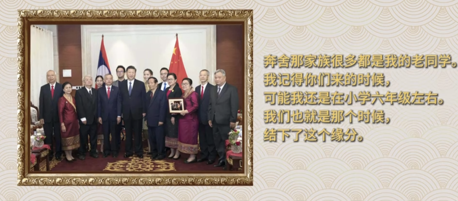 2017年11月,習(xí)近平總書記在會(huì)見(jiàn)老撾奔舍那家族友人時(shí)動(dòng)情地說(shuō):“奔舍那家族,很多都是我的老同學(xué)。我記得你們來(lái)的時(shí)候,可能我還是在小學(xué)六年級(jí)左右。我們也就是那個(gè)時(shí)候,結(jié)下了這個(gè)緣分?!?/p>