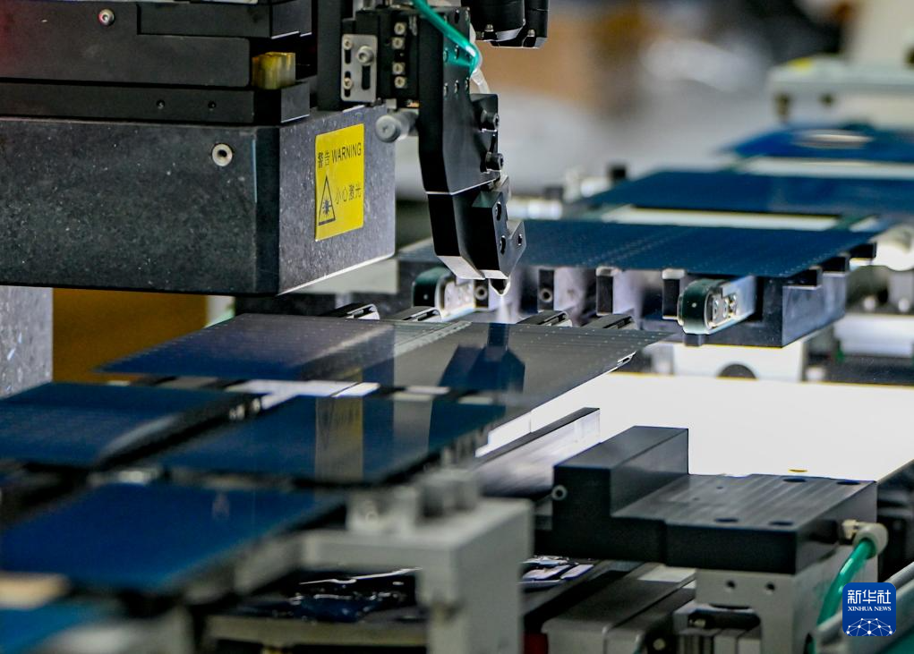 9月22日,在新疆巴音郭楞蒙古自治州若羌縣的國晟企誠新能源有限公司,全自動(dòng)劃片機(jī)在切割光伏電池片。新華社記者 陳朔 攝