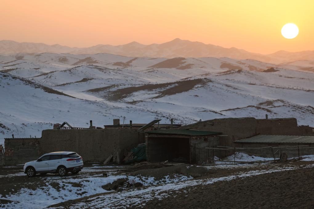 冬牧場上巴哈提家的房屋。屋旁的白色汽車是為慶祝小女兒昆樹阿克考上大學(xué)所買的禮物。(2023年12月1日攝)