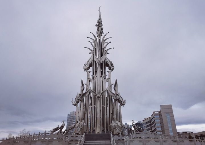 “克拉瑪依之歌”雕塑。新華社記者劉紅霞 攝