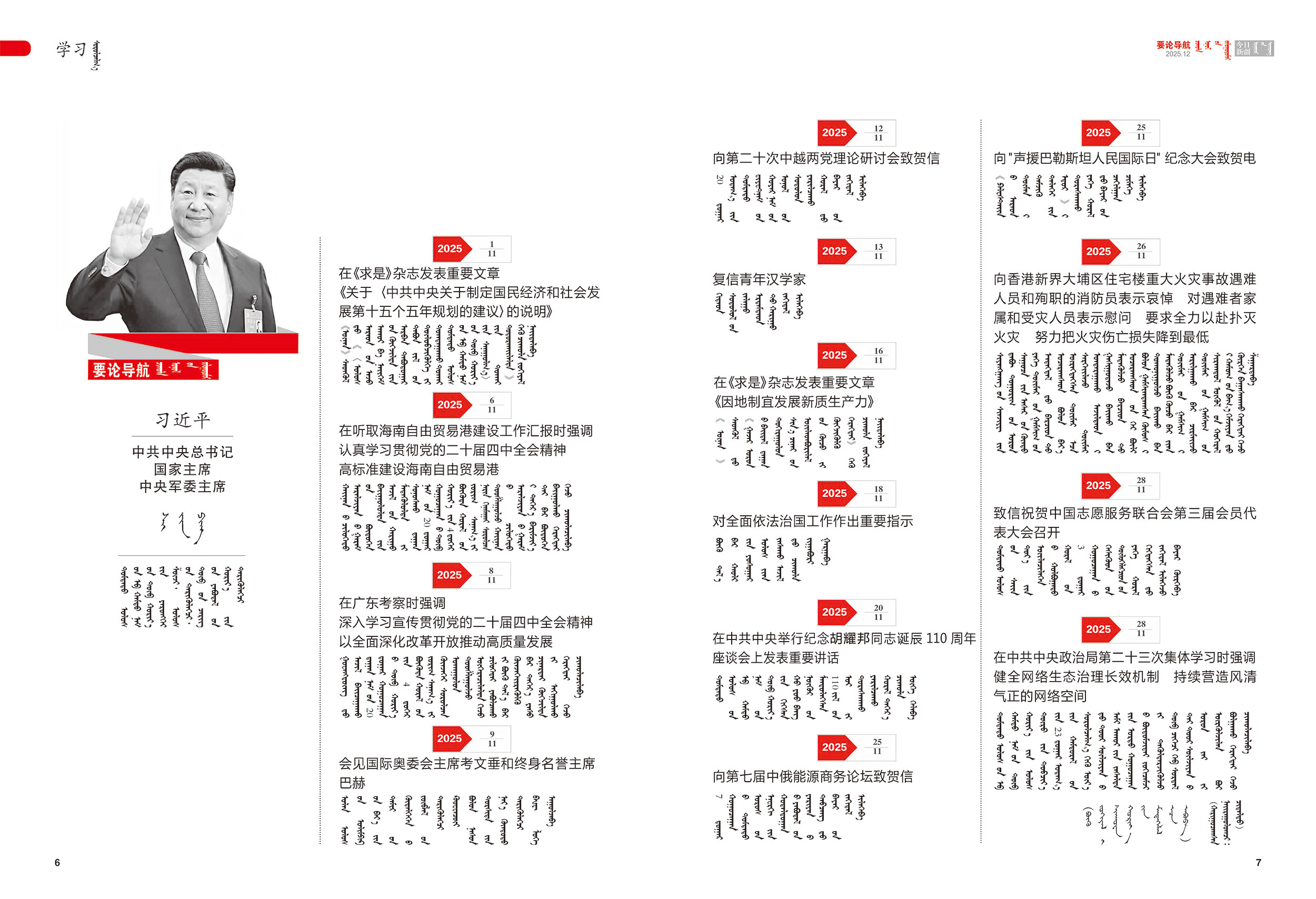 《今日新疆》(蒙古文)2025年第12期總264期