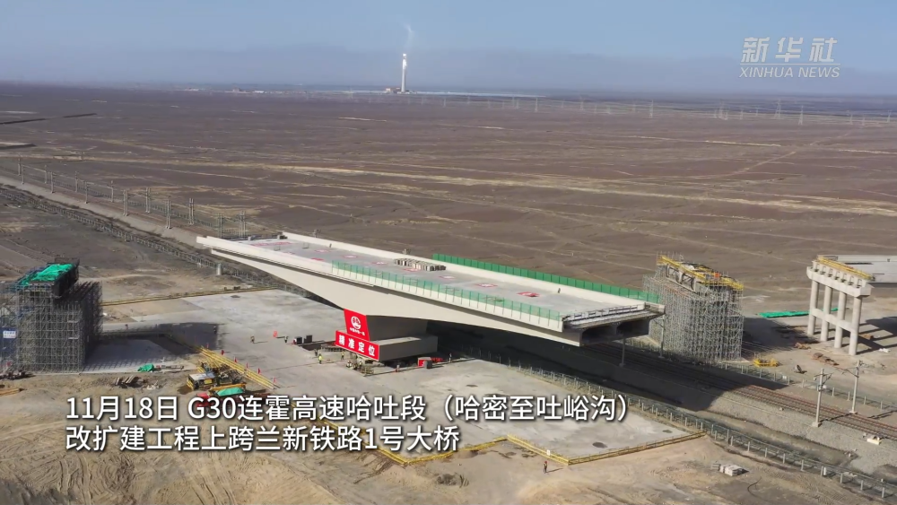 11月18日,G30連霍高速哈吐段(哈密至吐峪溝)改擴(kuò)建工程上跨蘭新鐵路1號(hào)大橋歷時(shí)70分鐘逆時(shí)針旋轉(zhuǎn)61度,以毫米級(jí)精度精準(zhǔn)落位,成功轉(zhuǎn)體。